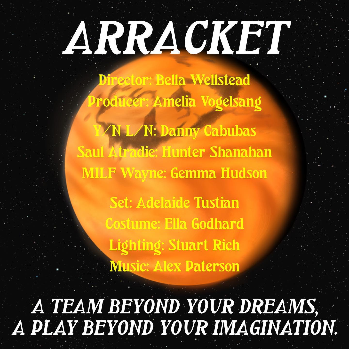 Sole composer and sound designer for ‘Arracket’, an original theatrical work presented by the Sydney University Dramatic Society in 2023. The score features a combination of live instruments, digital instruments, and found objects, all performed and recorded by Alex Ariel Paterson.
